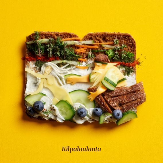 Kun maat ja mannut ovat muotoutuneet ja ihmiset löytäneet siellä sijansa, tulee asujien kesken kaikenlaisia kahnauksia. Kerran nuori Joukahainen haastaa mahtavan Väinämöisen kilpalaulantaan. Huonostihan siinä Joukahaiselle käy: vanhan tietäjän sanat ovat niin voimallisia, että suo uhkaa niellä Joukahaisen. Ei auta kuin luvata oma sisar Aino Väinämöiselle. Aino ei kuitenkaan suostu vanhan miehen morsiameksi, vaan pakenee mieluummin mereen ja muuttuu kalaksi. Väinämöinen jää ilman morsianta – eikä hänen naisonnensa myöhemminkään paljon paremmaksi muutu.